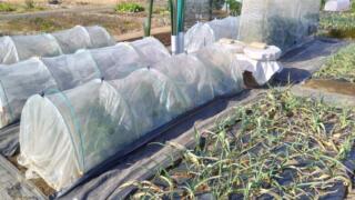 そら豆に防虫ネットを防風と防寒のために使っています。そのせいでしょうか、生育が良いです。背丈が50cmを超えてきました。枝もいっぱい出ています。少し早めと思いますが、枝の整理をすることにしました。6~7本に整理します。ネットを外して良く見て...