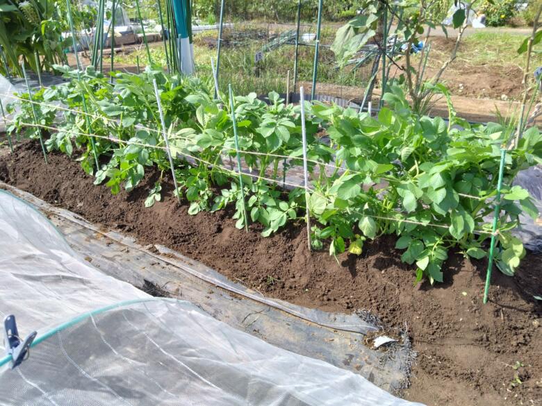 ジャガイモ用の支柱を設置しました。