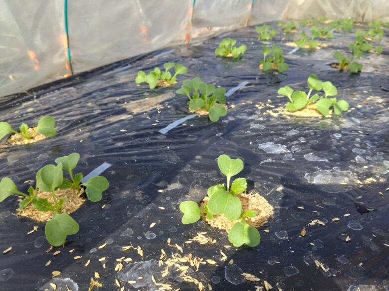 12月20日(播種18日後)1回目の間引きです。2本にしました。