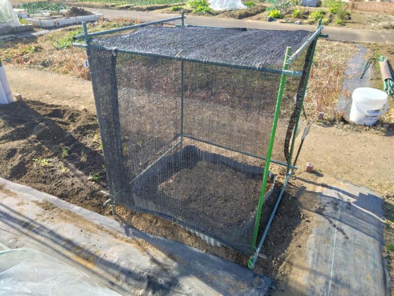 茗荷の日よけのために支柱をして寒冷紗を設置しました。