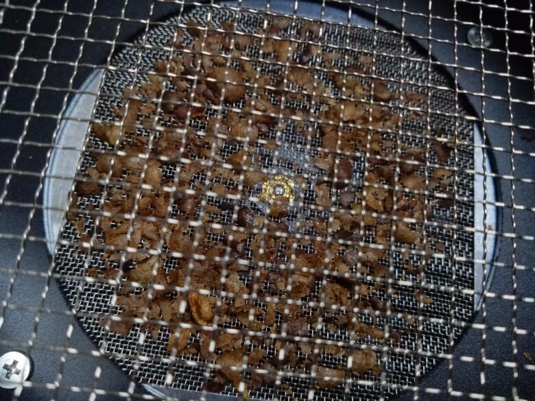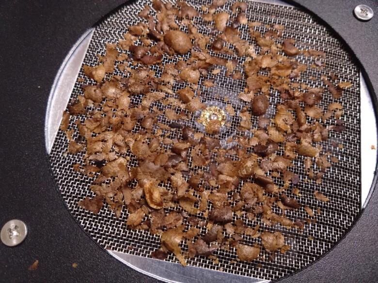 底の網に残ったチャフがあります。